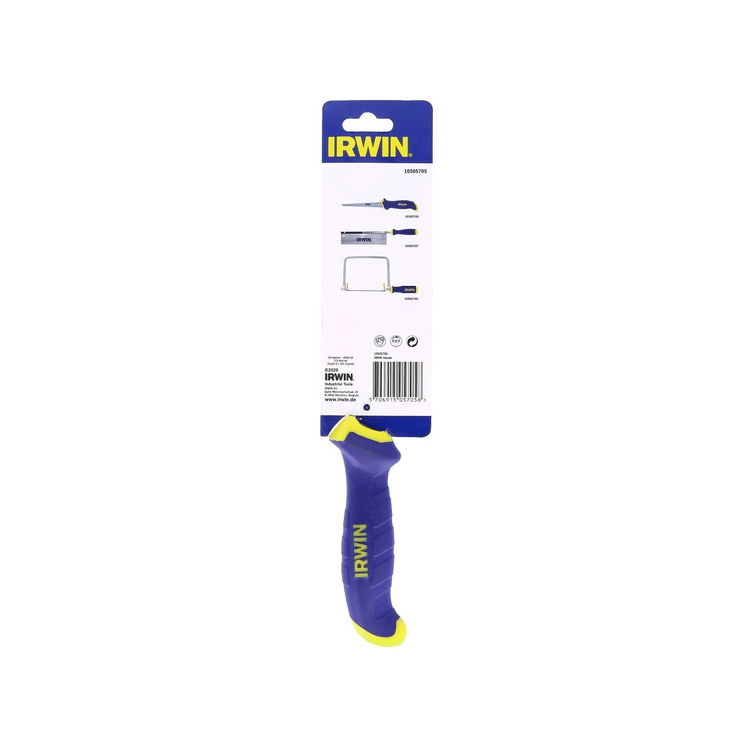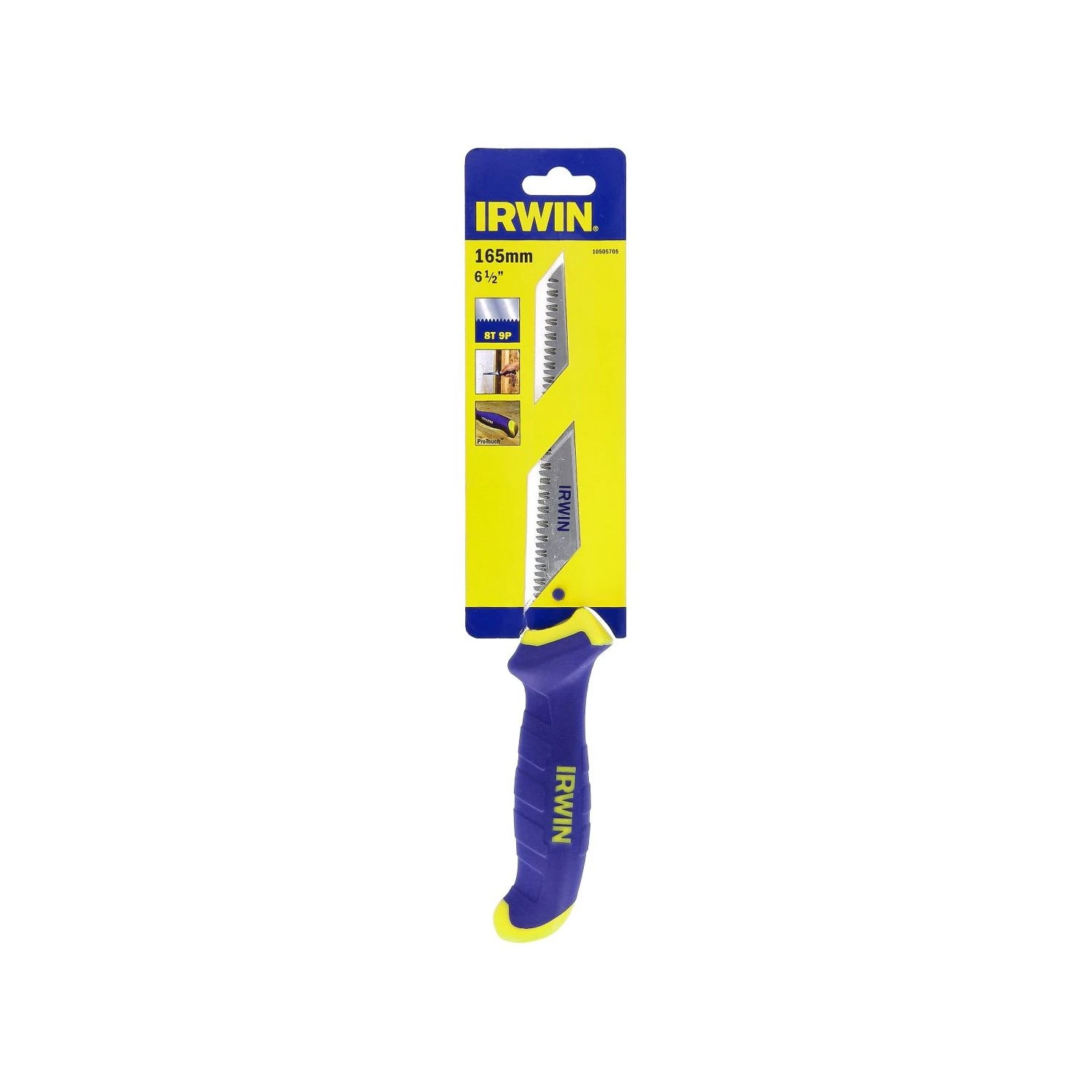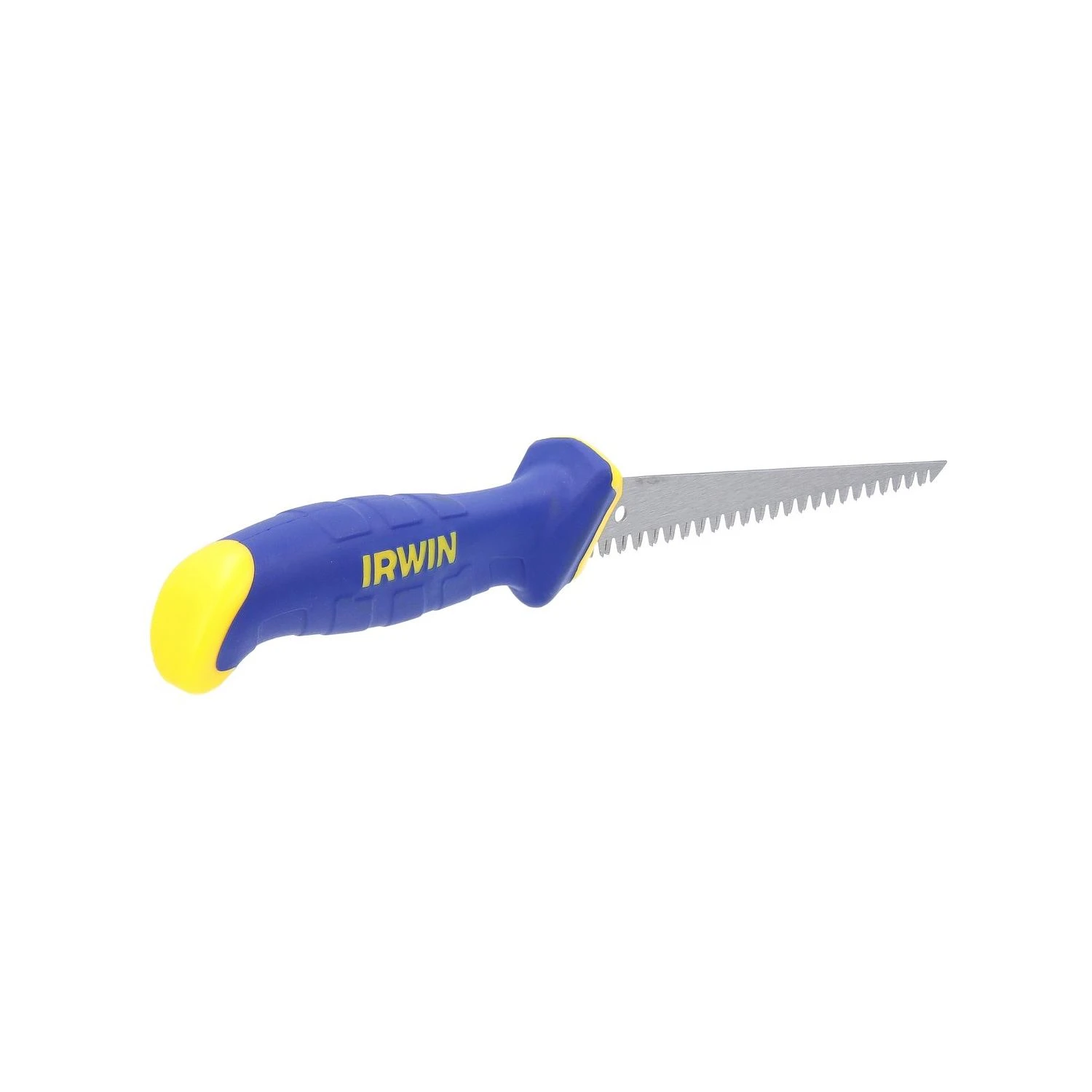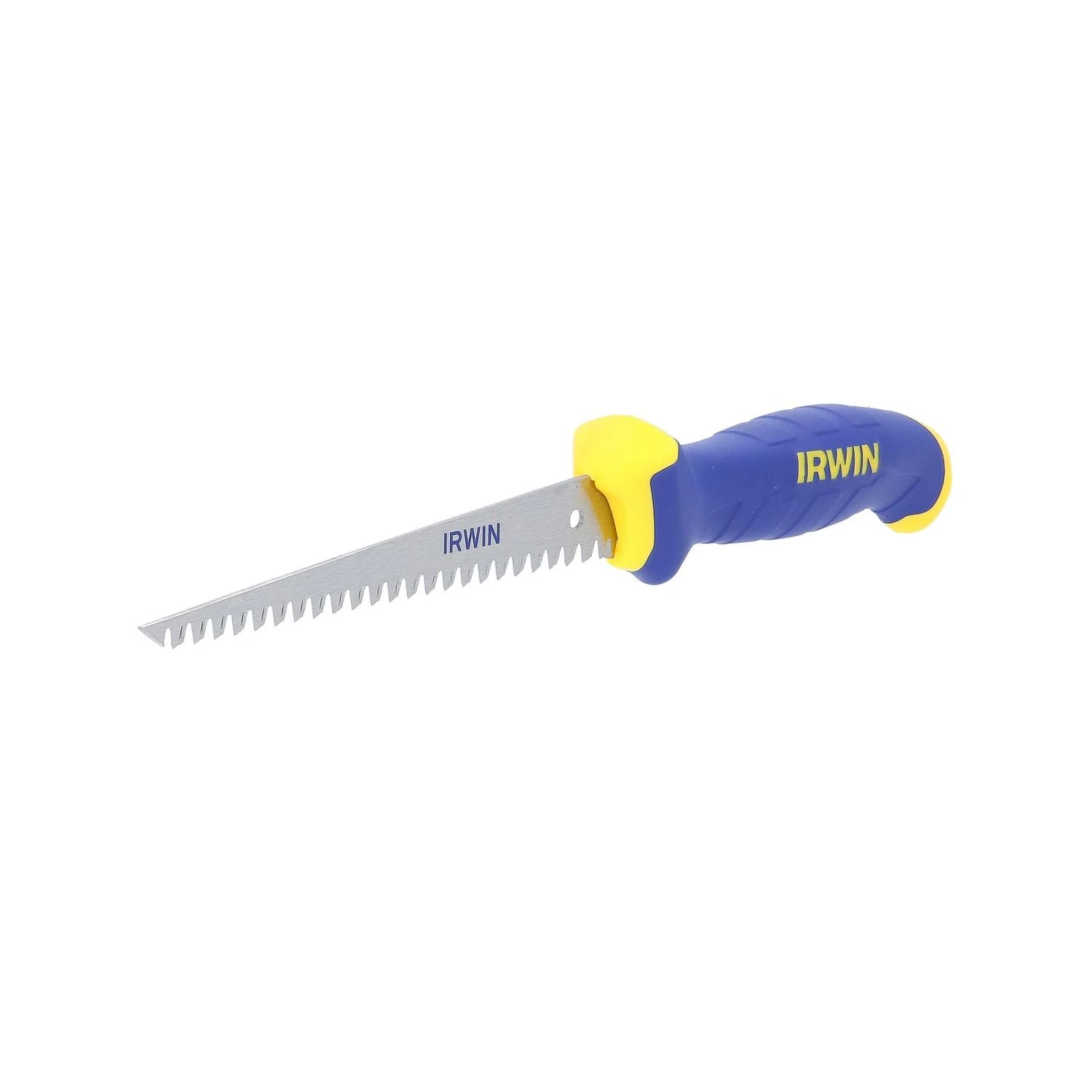 The Irwin 10505705 is a Jab Saw handy for Drywalling applications which measures 6. 1/2in / 165mm in length. Fitted with a hardened and tempered blade with an aggressive tooth design for improved cutting performance and greater removal of waste material. The Sharp tip makes it easy for punching through drywall. It has a ProTouch soft-grip handle for durability and comfort.