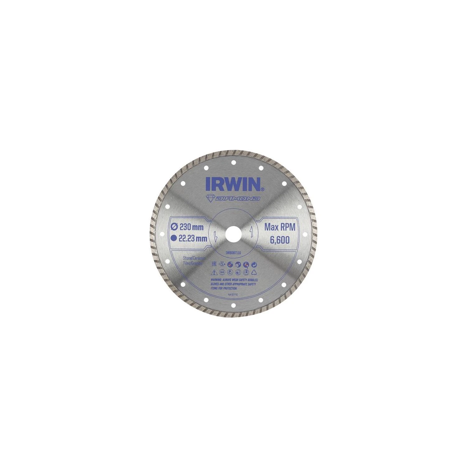 IRWINĀ® Diamond Blade 230 x 22.23mm for cutting stone, ceramic, tiles and granite. Fits all popular angle grinders.