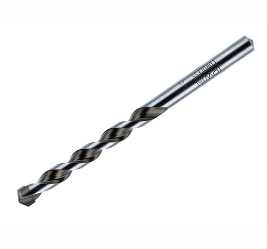 Four-facet ground carbide tip for lower drilling pressure and better centring.