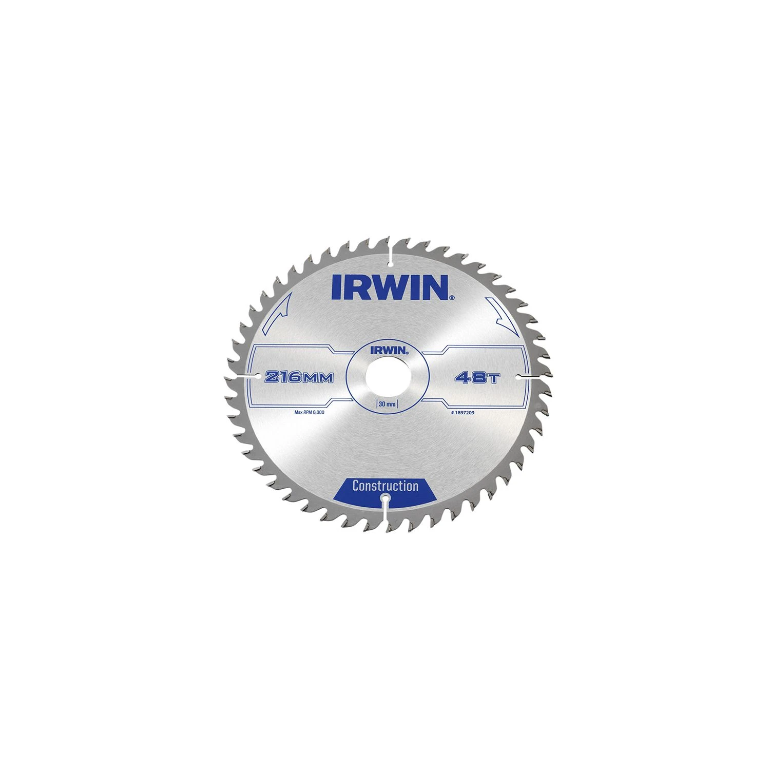 IRWIN General Purpose Table & Mitre Saw Blade with construction grade tungsten carbide tips that retain their edge for longer and are resharpenable. Expansion slots help to dissipate heat and prevent warping. The blades have a fully hardened plate that runs truer for longer and with more accuracy.