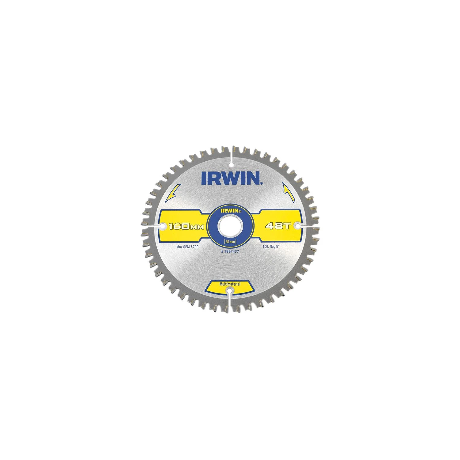 Irwin Multi Material Circular Saw Blade with construction grade tungsten carbide tips which retain their edge for longer and can be resharpened. Fully hardened plate with expansion slots help to dissipate heat and prevent warping.