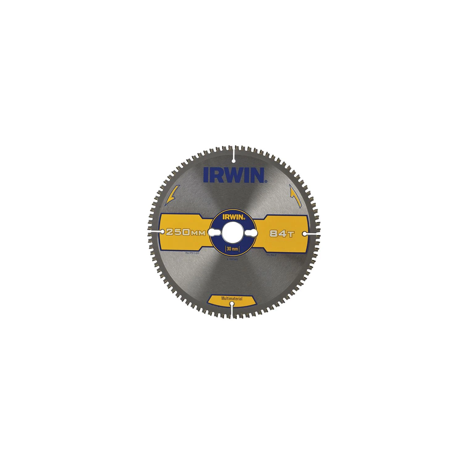 Irwin Multi Material Circular Saw Blade with construction grade tungsten carbide tips which retain their edge for longer and can be resharpened. Fully hardened plate with expansion slots help to dissipate heat and prevent warping.