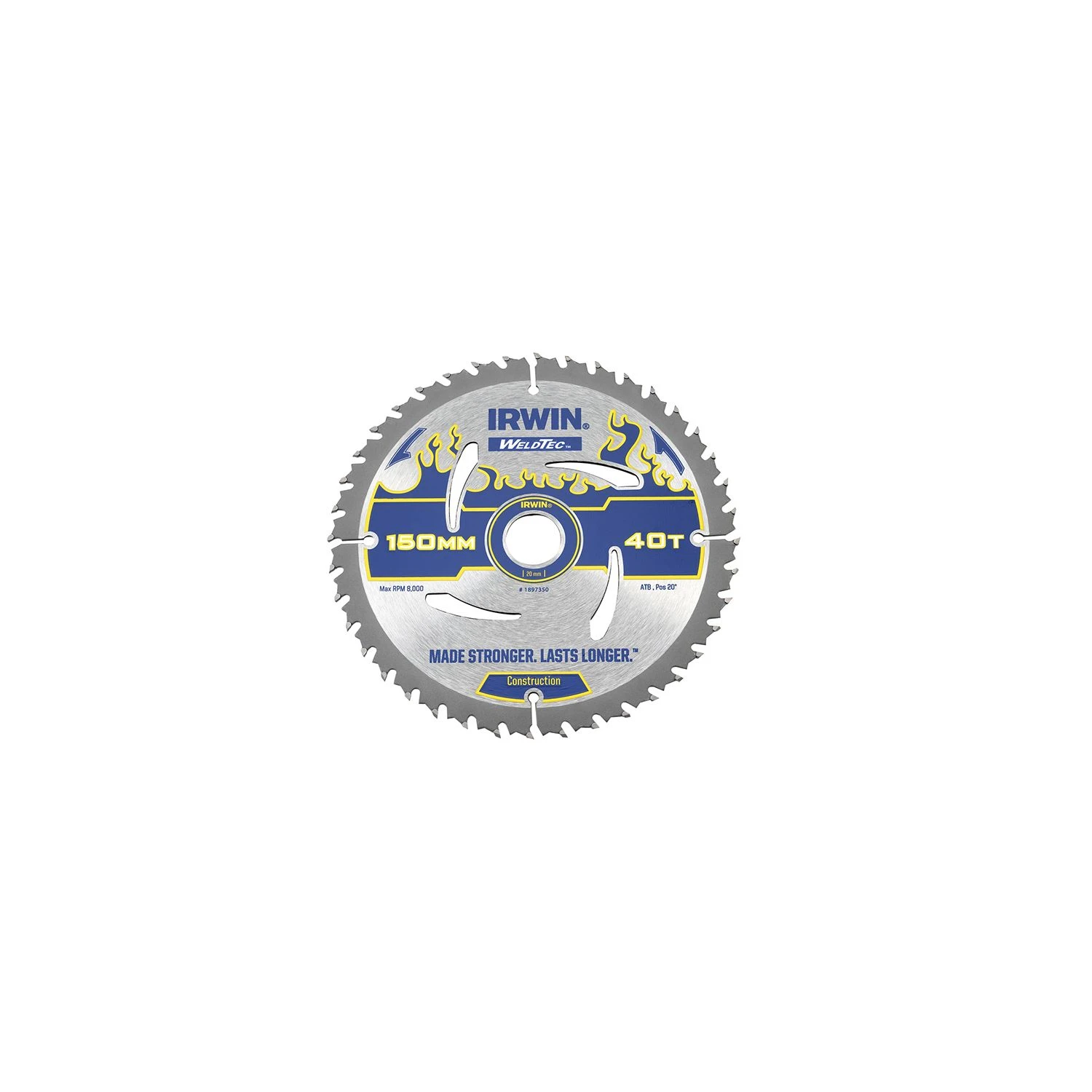 Irwin Weldtec Circular Saw Blade with welded carbide teeth for a substantially stronger tooth bond and longer life. The ultra compact carbide is 70% tougher than standard carbide for superior sharpness and cut quality.