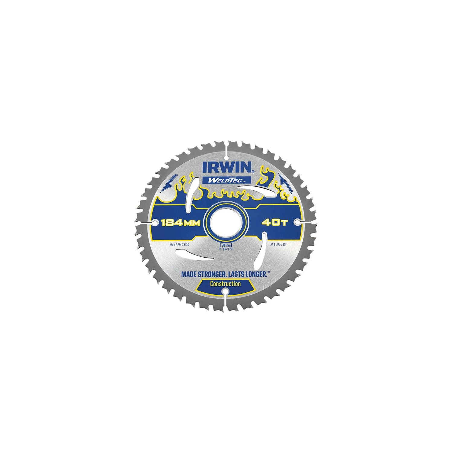 Irwin Weldtec Circular Saw Blade with welded carbide teeth for a substantially stronger tooth bond and longer life. The ultra compact carbide is 70% tougher than standard carbide for superior sharpness and cut quality.