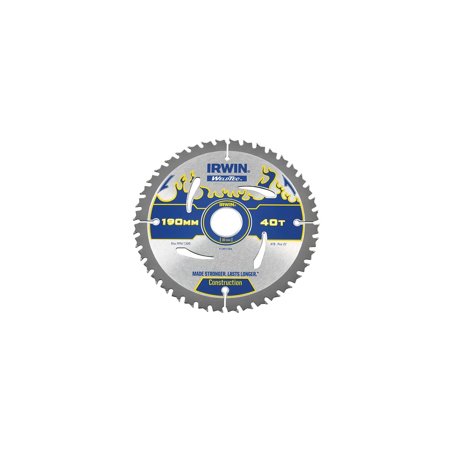 Irwin Weldtec Circular Saw Blade with welded carbide teeth for a substantially stronger tooth bond and longer life. The ultra compact carbide is 70% tougher than standard carbide for superior sharpness and cut quality.
