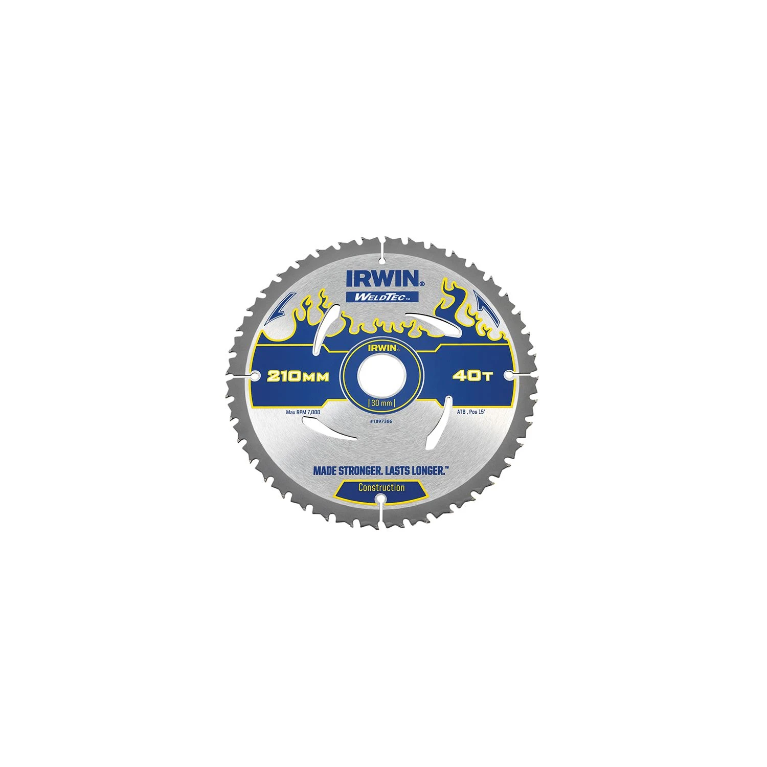 Irwin Weldtec Circular Saw Blade with welded carbide teeth for a substantially stronger tooth bond and longer life. The ultra compact carbide is 70% tougher than standard carbide for superior sharpness and cut quality.